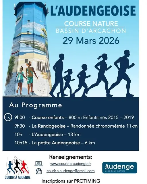 Courir à Audenge participe à l'animation de la ville d'Audenge en organisant une manifestation sportive L'Audengeoise course nature en mars.